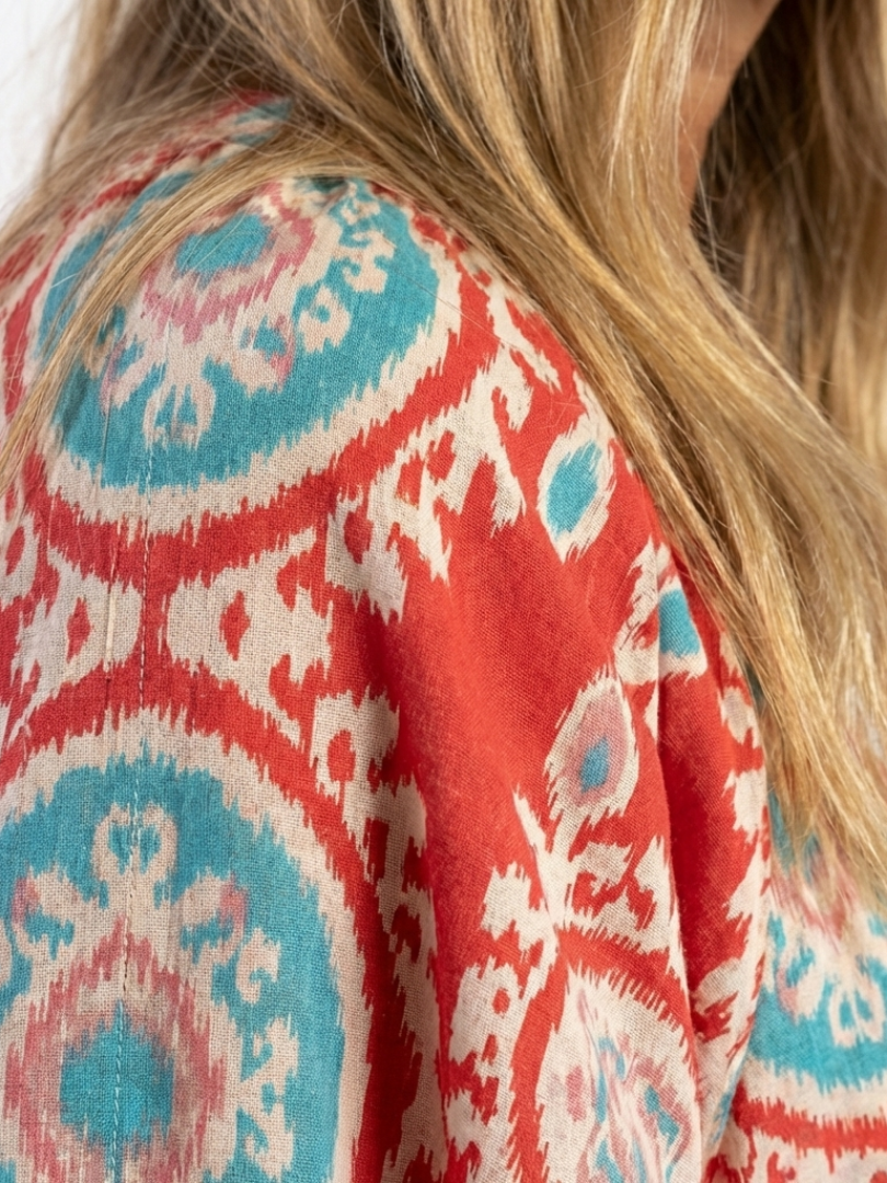 Zaria | Paisley Print V Neck Short Sleeve Midi Dress